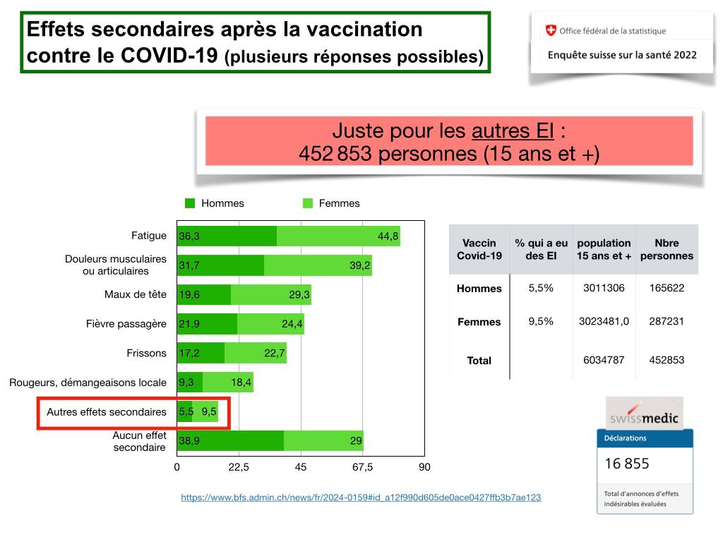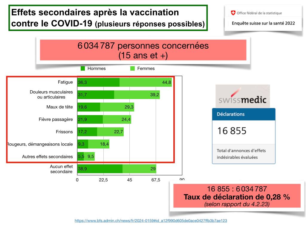 Les médecins rechignent à annoncer les effets indésirables à un point tel que pour les vaccins Covid, 55% des annonces à Swissmedic ont été faites par les personnes touchées elles-mêmes, malgré un travail administratif ardu. La conséquence est que seul 1 à 10% des troubles post-vaccinaux sont annoncés. Or, le calcul du rapport bénéfice-risque utilisé pour recommander les vaccins n’est jamais ajusté avec cette variable et ne correspond donc par à la réalité. Pourtant, les patients doivent être informé des risques de manière honnête et transparente. Explications d’un manquement grave qui continue de détruire des vies, avec un abandon médical des personnes touchées, qui ont pourtant fait confiance au système.